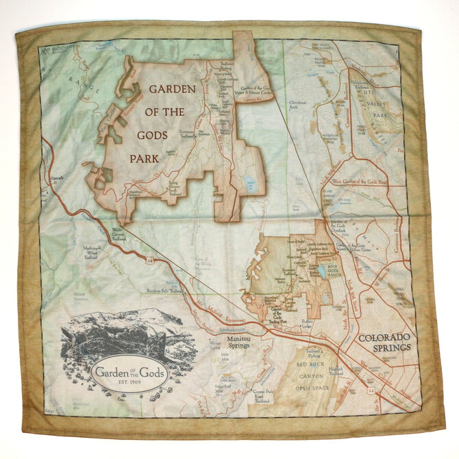 A vintage style detailed map of Garden of the Gods park in Colorado Springs, Colorado.