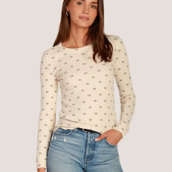 Adorable waffle knit long sleeve with minimalist flower motifs!