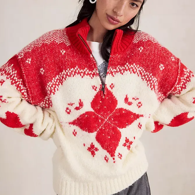 Get in the festive spirit with this slouchy sweater made from a soft knit fabrication. The style is oversized, and has a quarter-zip-inspired silhouette, creating the perfect laidback layer.