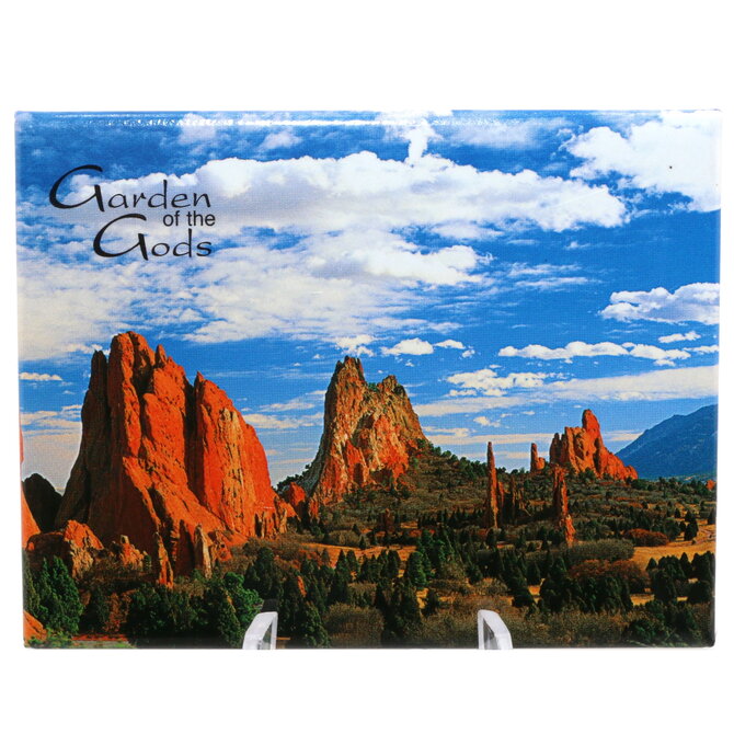Collectible magnet features a full-color photo of the landscape of the Garden of the Gods Park in Colorado Springs, Colorado.
