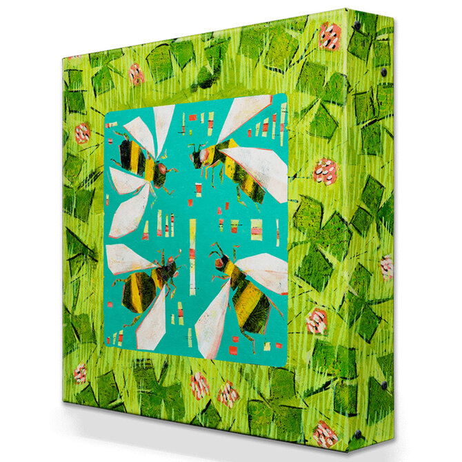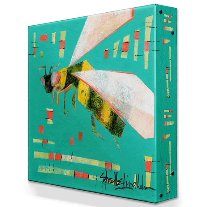 A stylized moose against a luminescent moon backdrop.  A unique combination of textures and color palette of blue and green to bring the creature to life. Ideal for enhancing any space with a touch of wilderness-inspired elegance.