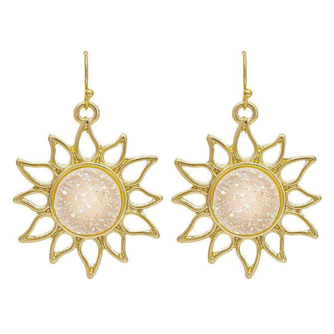 Multi Metal Gold, Silver and Copper Bee on Sunflower Face French Wire Earring