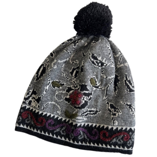 Classic jacquard pom pom hat with hand embroidered details in floral designs. It is not only stylish but light weight and keeps you warm.