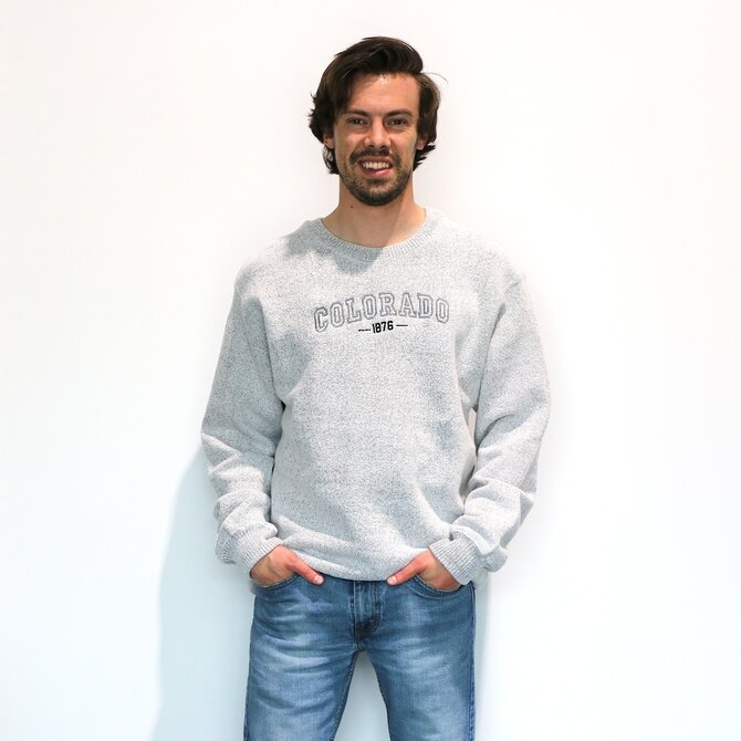 Athletic style sweatshirt in light grey/silver. 1876 Colorado Logo.