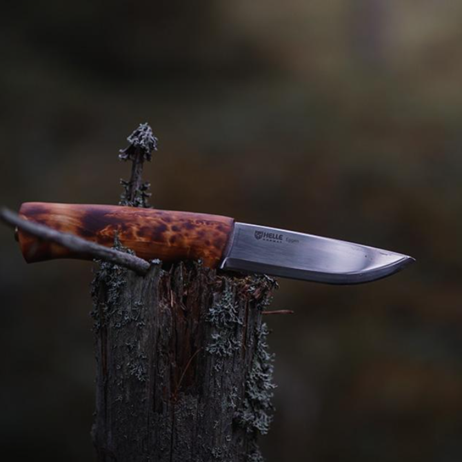 Eggen handle is crafted out of one piece of selected curly birch, sanded and polished to a satin finish. Finishes off towards the blade with a well-proportioned finger guard for safety.