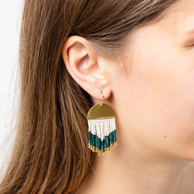 Earring - Cassie Mini Confetti Green/Gold Short Fringe