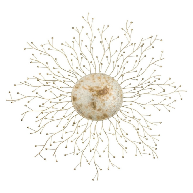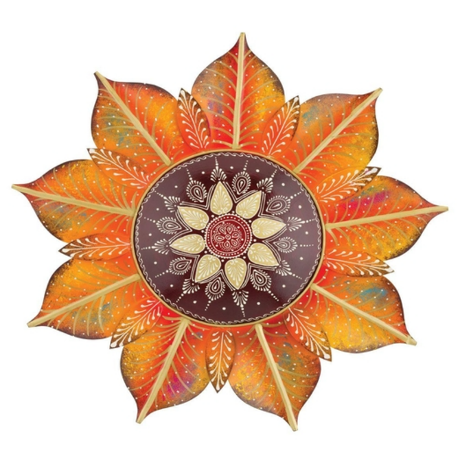 Soft metallic paint in golds, purples, reds, and oranges brighten up this Sunburst Floral Wall Décor.