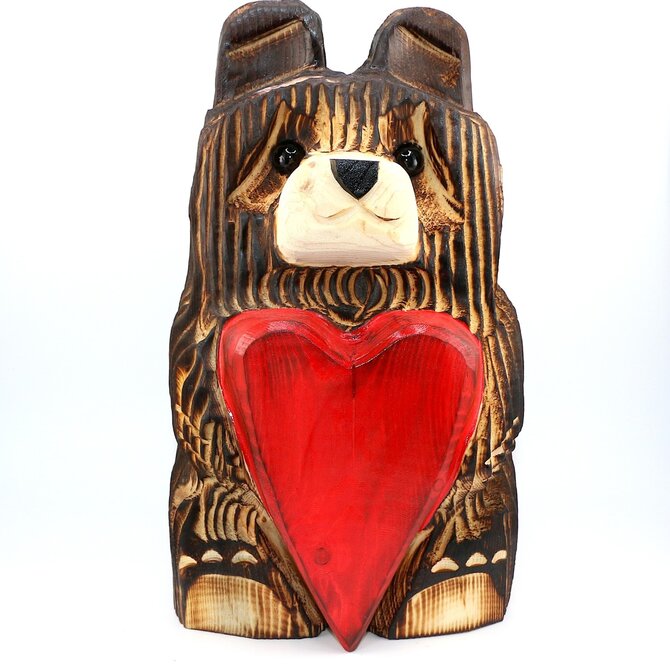Add character to your home or cabin! Each bear is unique, and carvings are made from dry Standing Dead Beetle Kill Pine logs from the Rocky Mountains. This carving comes with 1 coat of Water-based Exterior Spar-urethane.
