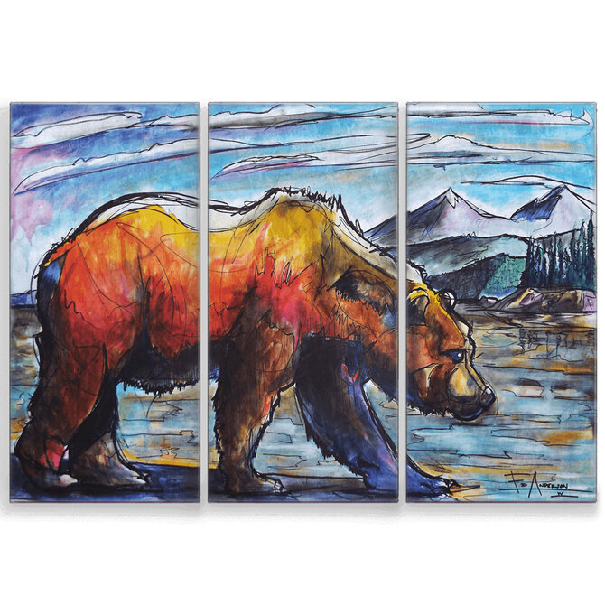 This version of "King of the Mountain" is printed on a 23" x 31" wood back and framed with a one-of-a-kind corrugated aluminum frame. The frame is adorned with its own artistic touches that elevates the entire piece.