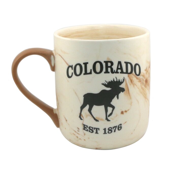 Ceramic Colorado Mug w/ Moose and Green Swirl Design