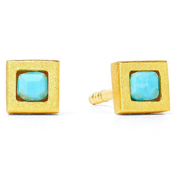 The gleaming Turquoise paired with matte24k gold plated pieces is something to be treasured. Expertly cut and rounded cubes lay neatly on this vivid necklace. Complete with an adjustable clasp.
